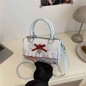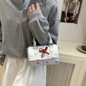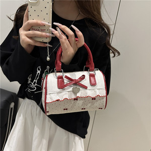 韩系可爱蝴蝶结手提包包女2025夏季甜美时尚蕾丝边百搭单肩斜挎包