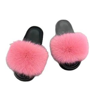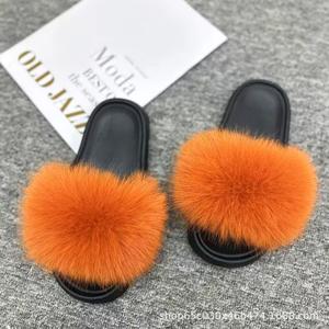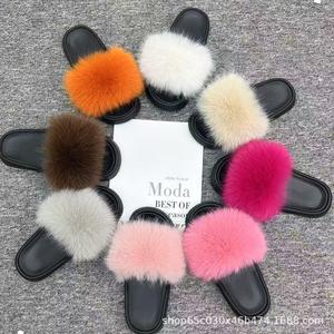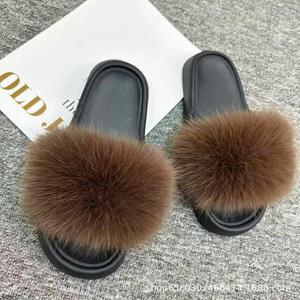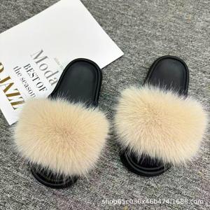 欧美跨境户外毛毛拖鞋女网红同款时尚狐狸毛拖鞋大码女凉拖ins潮