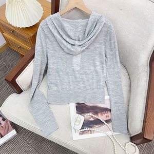alrigh 3 色クラシックベーシックソフト薄い羊毛フード付きジッパーストレッチニットカーディガンジャケット 2025