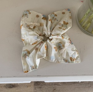 甜心可爱厨师小熊奶油黄蝴蝶结方巾大肠发圈少女心扎马尾发绳发饰