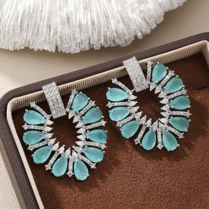 水滴彩锆耳钉轻奢高级感饰品女法式镶嵌彩色锆玉扇形花叶精致耳钉
