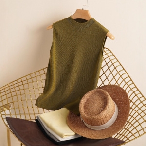 2025 秋の新クラシックオレンジイエロータンジェリン & スモールフラットハーフタートルネックノースリーブトップ女性のニットベスト