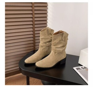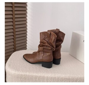 2025秋季新款百搭骑士靴复古中筒靴堆堆靴西部瘦瘦靴女粗跟马丁靴