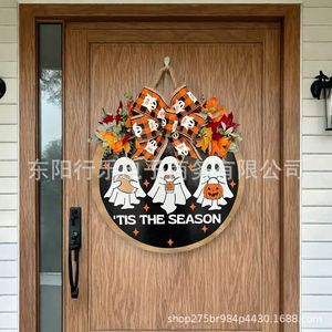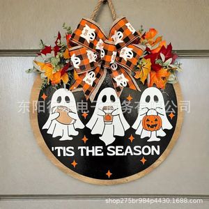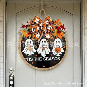 跨境新品万圣节圣诞耶稣白色幽灵BOO门牌装饰牌木质工艺品挂件