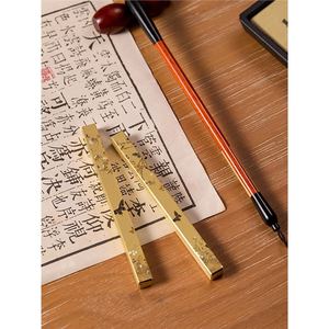 中古风黄铜镇纸尺创意毛笔架铜笔搁法式复古镇尺书法压纸学生压书