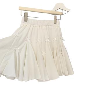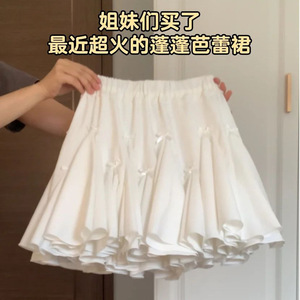 リボン白いつぼみスカート女性の夏バレエスタイルケーキスカートハイウエストスリムAラインふわふわショートスカート