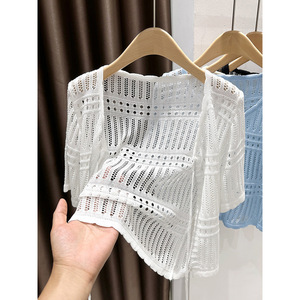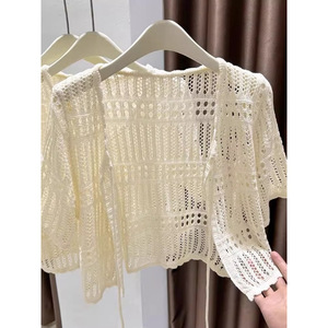 波西米亚风镂空短袖针织开衫女夏季配吊带裙外搭披肩短款防晒罩衫