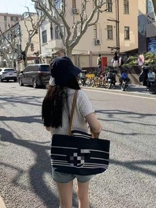 轻便新款中古沙滩包牛仔条纹慵懒风大容量包女休闲帆布托特购物袋
