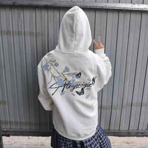 2025秋季新款美式潮流休闲百搭宽松薄款刺绣连帽卫衣外套