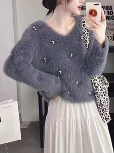 韓国版の新しい光沢のある新年クリスマスセーター女性のための秋と冬の新しいミンクベルベットデザインソフトワックスルーズトップ