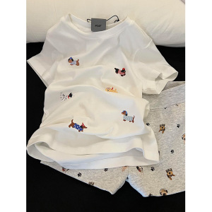 2025 パピープリント韓国風かわいいカジュアルパジャマ女性の夏の新しい半袖ショーツホーム服セット外でも着用可能
