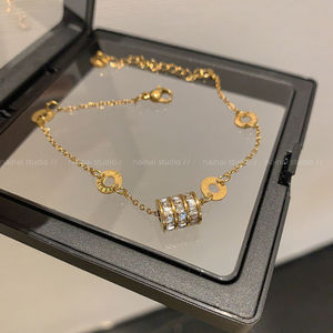 钛钢不掉色~罗马字母小蛮腰金色手镯高级感轻奢四叶草手链手饰女