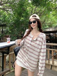 【自家工厂现货】夏日宽松慵懒条纹长袖防晒衣半开领休闲上衣女