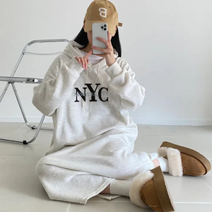 スーツ韓国版韓国2024秋冬新作フェミニンラウンドネック長袖ミドル丈スプライシングスカートファッショナブルで多用途でシンプル