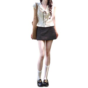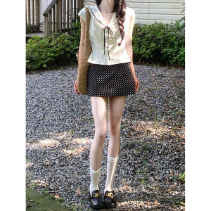 甜美海军领修身显瘦木耳边衬衫波点半身裙女2025夏季新款时尚套装