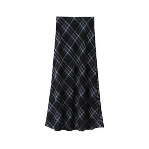 【欧凡】 法式深蓝格纹高腰半身裙女夏季宽松显瘦气质长裙子3094