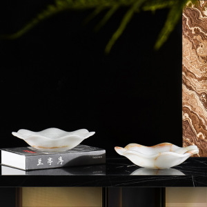 现代新中式玉石果盘摆件样板间售楼处客厅茶几装饰品陈设