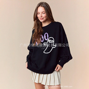 亚马逊25秋冬新款跨境欧美女装万圣节幽灵蝙蝠长袖休闲上衣卫衣女