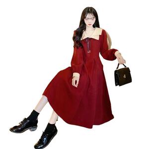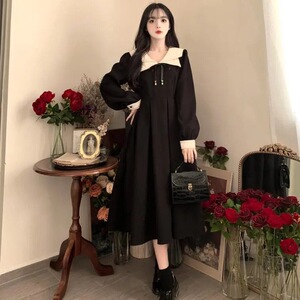 连衣裙女装高腰裙子潮法式减龄学院秋冬礼服中长裙大码胖mm裙子潮