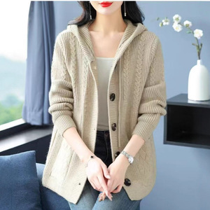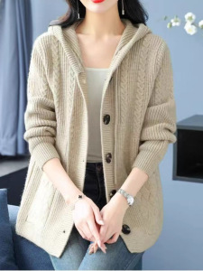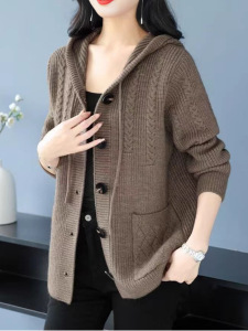 秋冬针织开衫女士宽松韩版2025年新款爆款连帽上衣外搭毛衣外套女