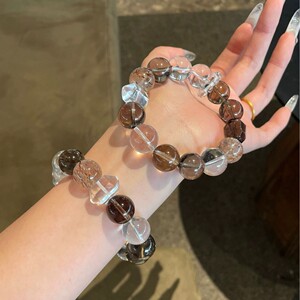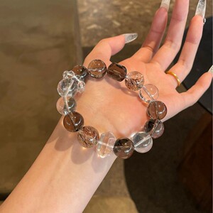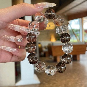 幸柿|天然透体茶水晶双A白水晶黑金超七双尖随形女生招财转运手串