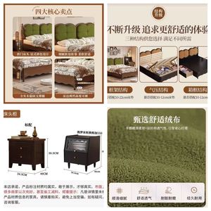中古风橡胶木1.5米双人床带抽屉婚床次卧高端大气古风美式软木床