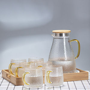 加厚耐高温玻璃锤纹凉水壶耐热防爆大容量多用水壶果汁壶水杯套装