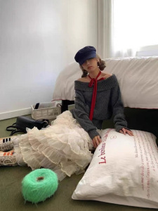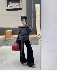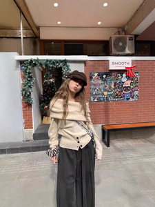 韓国風の優しくてスタイリッシュなワンショルダーセーター2025秋冬新作エレガントでスリムで年齢を軽減する女性用セーター