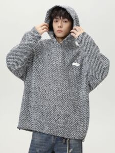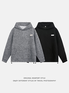 重磅质感粗纺连帽卫衣男秋季款轻奢老钱复古廓形潮牌加厚外套上衣