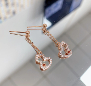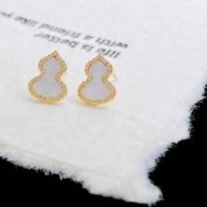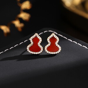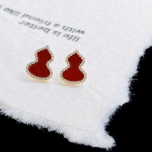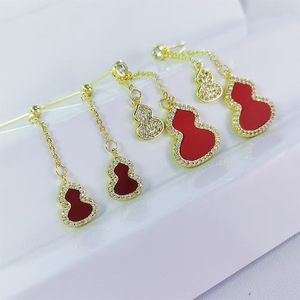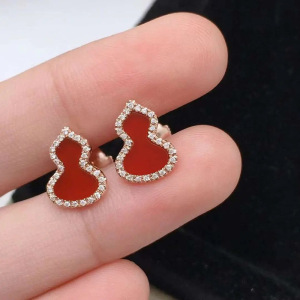 直播爆款高品质天然白贝母葫芦耳钉女国风气质天然红玛瑙葫芦耳环