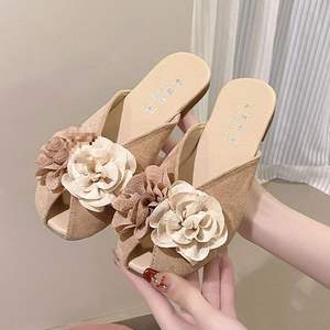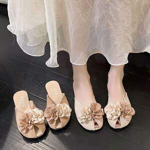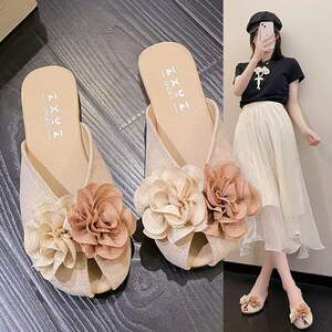 女性用スリッパ、フレンチトゥトゥスリッパ、メリージェーンシューズ、フラットシューズ、フラワーシングルシューズ、ハーフスリッパ、春夏のイブニングスタイル婦人靴