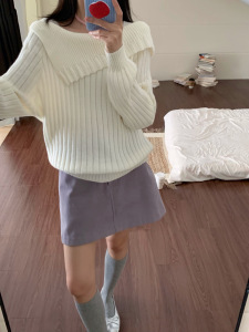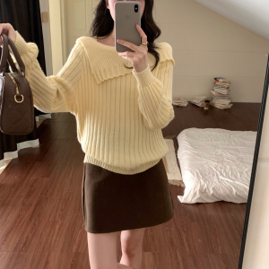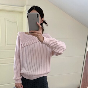 法式新款慵懒风针织衫女一字肩露肩2025内搭秋冬时尚毛衣小心上衣