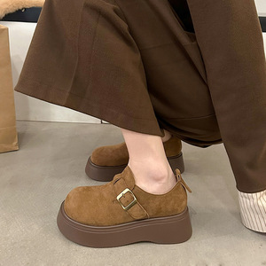厚底增高博肯鞋女2025春季新款懒人一脚蹬复古博肯单鞋休闲乐福鞋