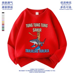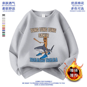 国外山海经通通哥Sahur木棍人板鞋鲨鱼男女儿童圆领卫衣长袖衣服