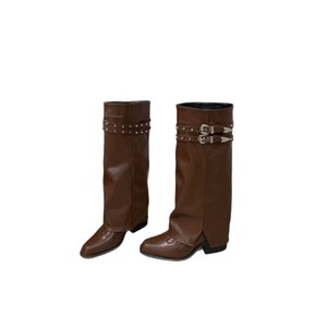 秋冬季新款显瘦铆钉高跟裤管靴尖头刺绣西部牛仔靴长筒靴女靴子