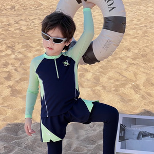 儿童泳衣男孩分体长袖长裤游泳衣防晒小童宝宝中大童海边游泳套装