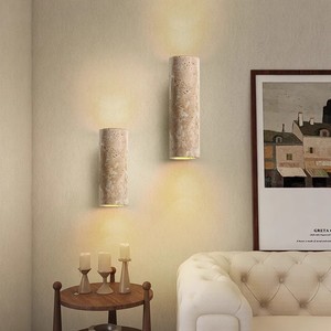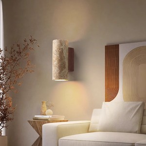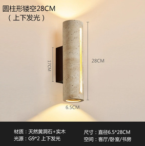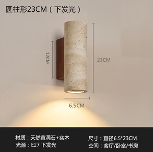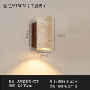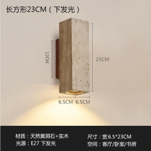 日式侘寂风黄洞石卧室床头壁灯民宿北欧复古实木客厅背景墙过道灯