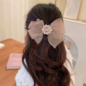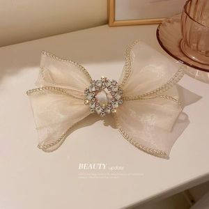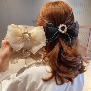 韩版镶钻网纱蝴蝶结发夹超仙气质满钻蝴蝶结发卡高级感弹簧夹发饰
