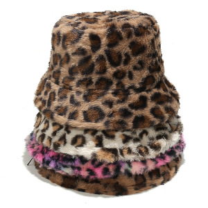 クロスボーダーヒョウ柄フィッシャーマンハット、ファッショナブルでレトロな顔が見える小さな盆地帽子、韓国版、多用途で暖かい豪華な冬の帽子、女性用卸売