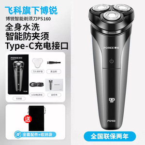 飞科旗下博锐PS160水洗Type-c充电+赠送收纳包+3刀头+鼻毛器+置物架 (智能升级款)✓★
