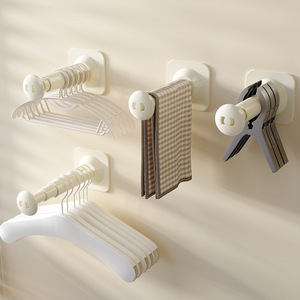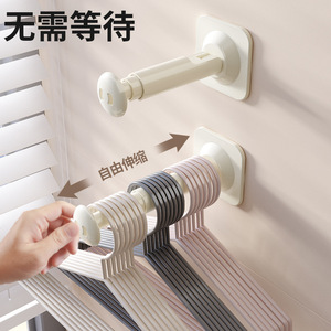 衣架收纳家用阳台多功能免打孔伸缩晾衣架墙上壁挂置物架伸缩式