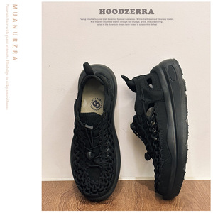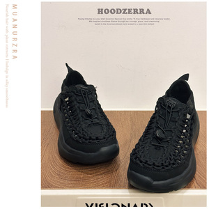 WK厚底编织摇摇鞋凉鞋夏季日系情侣包头凉鞋女沙滩鞋旅游溯溪鞋男