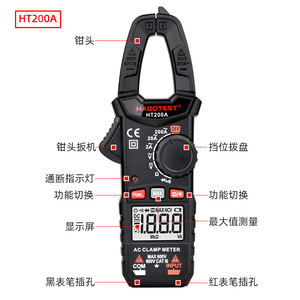 华博HT200A/B黑色便携高精度钳表数字万用表交流钳形万能表数显