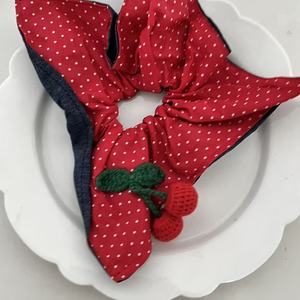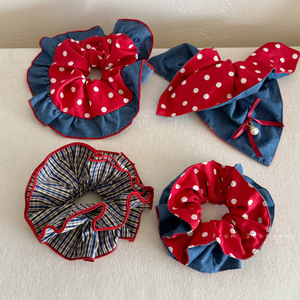 レトロな赤と青のコントラスト水玉模様のヘアゴムスクエアスカーフインスタイルエレガントな生地のヘアゴムスクエアヘアロープ女性用