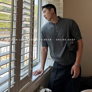 POLO衫翻领短袖针织衫男纽扣英伦商务修身夏季冰丝潮外贸跨境批发