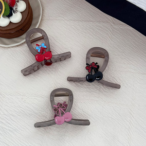 日韩樱桃纯色简约卡通抓夹女2025年中号气质优雅后脑勺鲨鱼夹发卡