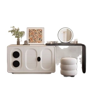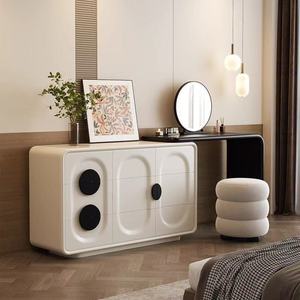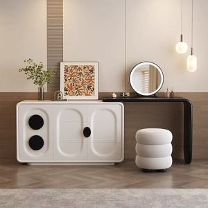 美式梳妆台烤漆轻奢化妆桌时尚奶油风可伸缩卧室梳妆台桌柜一体
