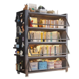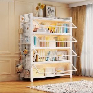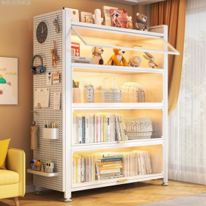 ドア付きスチール本棚防塵フリップ収納キャビネット一体型壁掛け家庭用子供用本棚多層床から天井までの収納キャビネット
