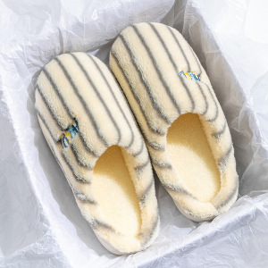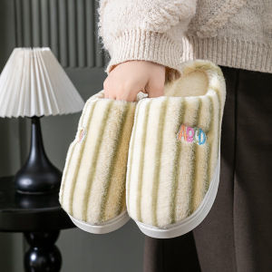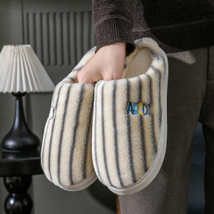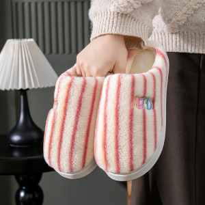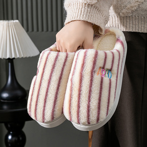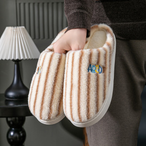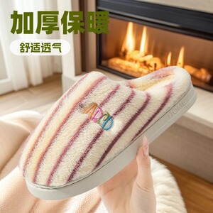 条纹竖条款新款棉拖鞋女冬居家加绒月子鞋毛绒棉拖鞋男工厂批发