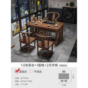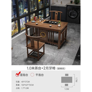 新中式实木办公室家用小户型功夫茶几高级泡茶台阳台喝茶桌椅组合